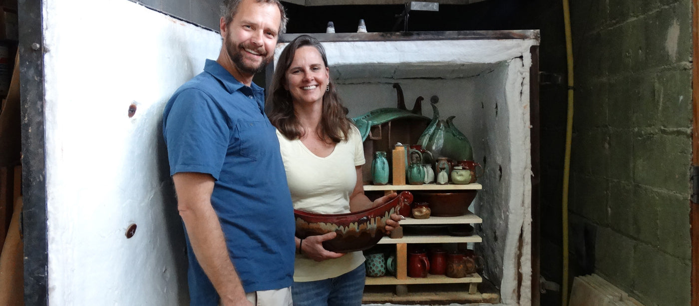 Rob and Beth Mangum, from Mangum Pottery Studio and Gallery seven miles from Asheville, in Weaverville, NC, come from a family of potters. Their creative process is guided by the clay itself, through years of studying the nature of the materials.